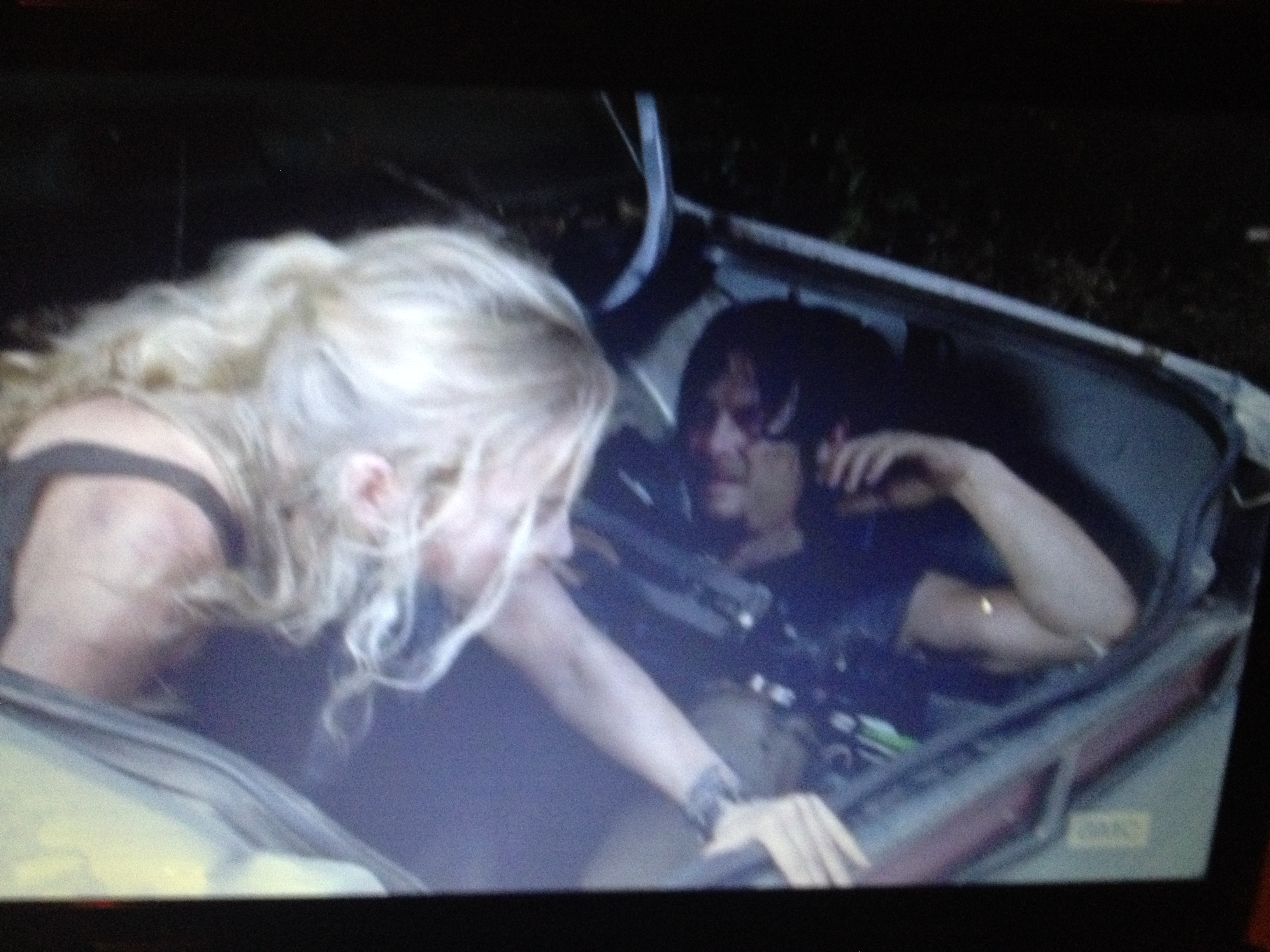 My WD buddy texted me, That trunk scene could have been way hotter!  Ha! Agreed, but it would have been kind of hard to get things going with all those damn walkers partying outside, even while sharing the tight quarters with Daryl Dixon.