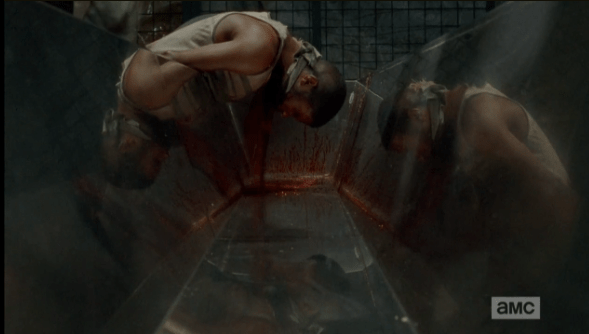 bloodletting in the trough Published October 14, 2014 at 589 × 334 in The Walking Dead, Season 5, Episode 1, “No Sanctuary” Greg Nicotero has outdone himself once again, directing this episode (pretty much the most epic WD episode thus far, am I right?) and setting the bar once again with unprecedented effects. Bravo, Greg Nicotero, bravo!