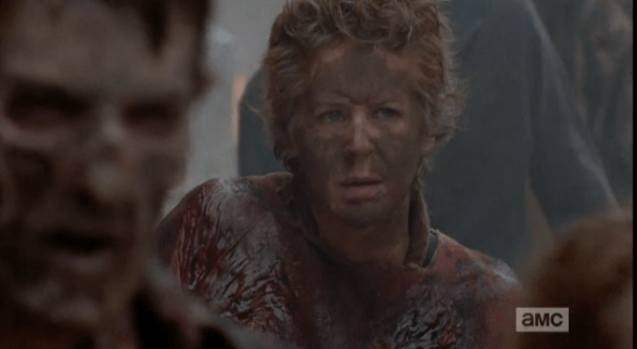 carol among the walkers Published October 16, 2014 at 587 × 322 in The Walking Dead, Season 5, Episode 1, “No Sanctuary” Carol takes in the scene, hidden among the walkers.