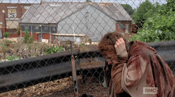 carol covers her ears Published October 16, 2014 at 590 × 329 in The Walking Dead, Season 5, Episode 1, “No Sanctuary”
