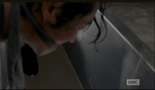 glenn blood trickle Published October 14, 2014 at 594 × 346 in The Walking Dead, Season 5, Episode 1, “No Sanctuary”