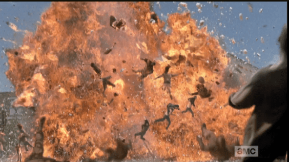 walkers go boom Published October 16, 2014 at 592 × 332 in The Walking Dead, Season 5, Episode 1, “No Sanctuary”