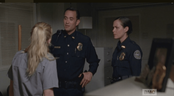 beth vs bad cop Published November 29, 2014 at 592 × 328 in The Walking Dead, Season 5, Episode 7, “Crossed” Both the male cop, and Dawn Lerner, are shocked by Beth’s audacity, and daring.