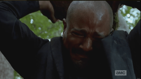 gabriel can’t smash her Published November 30, 2014 at 592 × 335 in The Walking Dead, Season 5, Episode 7, “Crossed” Gabriel cannot bring himself to do it, throws the rock aside, and hobbles away.