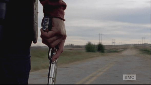 glenn poised and ready ranch walkers Published November 28, 2014 at 589 × 332 in The Walking Dead, Season 5, Episode 7, “Crossed” Glenn stands watch against the Slaughterhouse Ranch Walker Mega Herd…a massive threat, only about a quarter mile away.