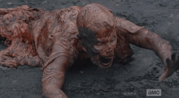 napalm walker 2 Published November 30, 2014 at 592 × 324 in The Walking Dead, Season 5, Episode 7, “Crossed” …and this is where they have been, reanimated, melted into the asphalt, stuck and snapping, the whole time since the bombing.