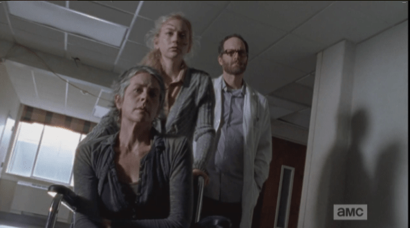 beth edwards carol Published December 6, 2014 at 593 × 330 in The Walking Dead, Season 5, Episode 8, “Coda” We see Beth wheeling Carol down the hall in a wheelchair, with Doc Edwards behind them.