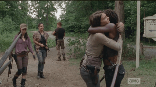 gang reuintes Published December 5, 2014 at 591 × 331 in The Walking Dead, Season 5, Episode 8, “Coda” The gang reunites, and Michonne, smiling, tells Maggie that Beth is alive, in a hospital in Atlanta, and the others have gone to go get her back.