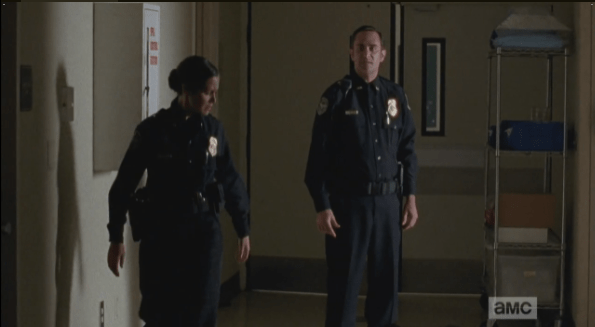officer OD challenges beth as dawn walks past percy Published December 5, 2014 at 595 × 327 in The Walking Dead, Season 5, Episode 8, “Coda”