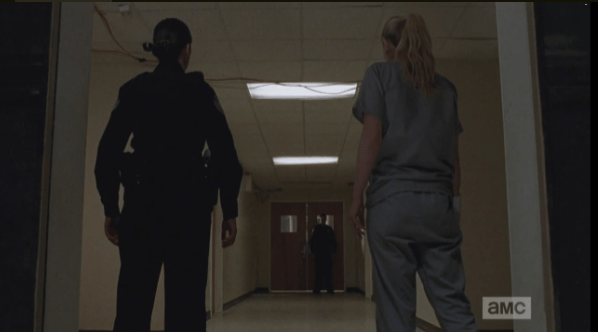 officer od has overheard the dirty deets Published December 5, 2014 at 598 × 332 in The Walking Dead, Season 5, Episode 8, “Coda” A noise from down the hallway startles Beth and Dawn…they turn to find Officer OD standing there. It seems he has been there a while, and has overheard all the dirty deets.