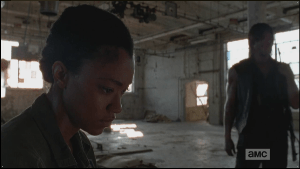 sasha feeling dumb Published December 5, 2014 at 597 × 338 in The Walking Dead, Season 5, Episode 8, “Coda” Sasha’s feeling pretty dumb right about now…don’t take it too hard, girl…not the first time a righteous sister’s been taken in by a smooth-talking man with an agenda.