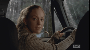 Usually,at this point, Aaron’s probably basking in the thanks and adulation of the rescued survivors, driving the latest imports back to Alexandria, and regaling his captive, adoring audience with amusing tidbits about the latest Alexandria antics (real or fake, remains to be seen) while the survivors nod and exclaim and over-laugh at Aaron’s jokes, chowing down cold canned foods and chugging applesauce in the back seats.