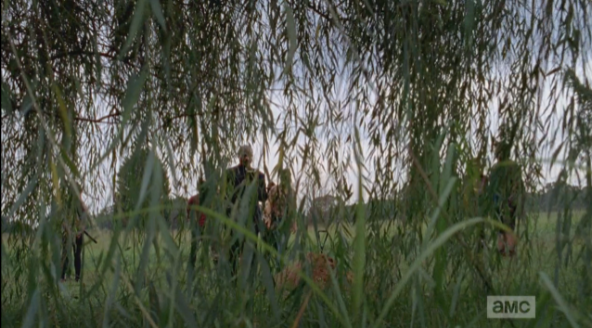 Rick-In-Charge does not respond to this, as he has a barn to secure. He loudly asks if anyone sees anything. Glenn peers out through the slats of the barn, reports, “Just a lot of places to hide.”