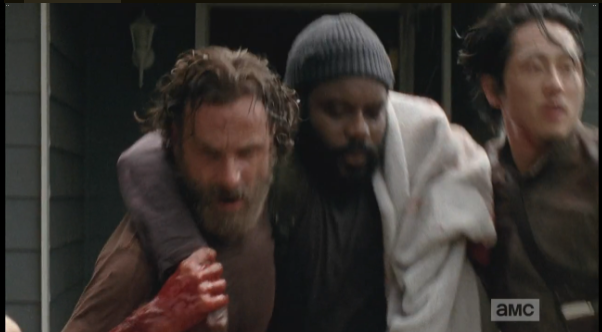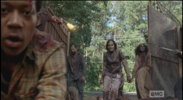 Abraham says, “I got it,” and from behind, Rosita says, “We got it.” They stride forward to take care of Mr. and Mrs. Walker.