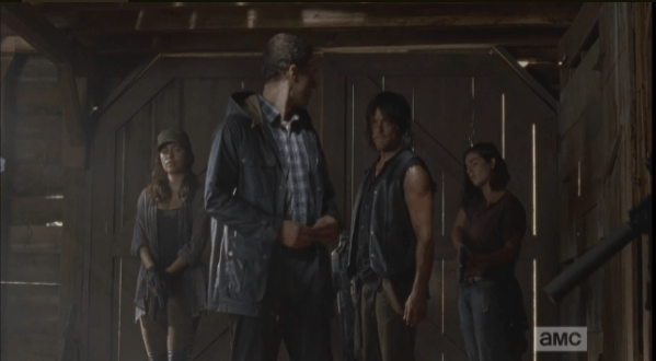 aaron turns to daryl, agrees Published February 25, 2015 at 599 × 330 in The Walking Dead, Season 5, Episode 11, “The Distance” Aaron looks back at Daryl, nervously agrees that, “You’re absolutely, 100% right.”