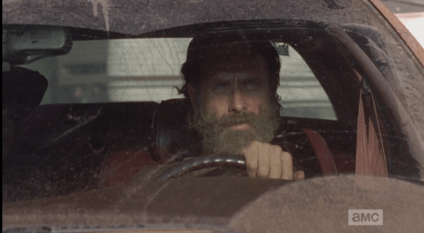 at the gates 2 Published February 28, 2015 at 597 × 328 in The Walking Dead, Season 5, Episode 11, “The Distance” Rick looks at the gate.