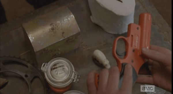 carl found flare gun Published February 27, 2015 at 600 × 326 in The Walking Dead, Season 5, Episode 11, “The Distance” “I’ve never seen a gun like that before,” Carl says to Rick. Rick takes the gun, looks in the chamber, then up at Aaron, begins to stride over to him.