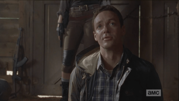 how about a guy who leaves water Published February 27, 2015 at 593 × 335 in The Walking Dead, Season 5, Episode 11, “The Distance” Aaron, however, retorts in kind, “How about a guy who leaves bottles of water in the road?”