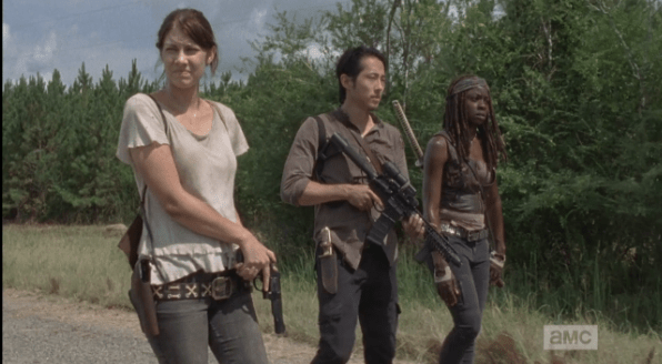 maggiie sez it’s a good question Published February 28, 2015 at 596 × 328 in The Walking Dead, Season 5, Episode 11, “The Distance” Looking away, Maggie agrees, “It’s a good question.”