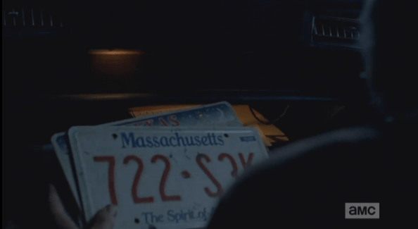 rick finds aarons license plate collection Published February 28, 2015 at 594 × 325 in The Walking Dead, Season 5, Episode 11, “The Distance” …when Rick finds Aaron’s license plate collection in the glove compartment. At Rick’s questioning look towards Glenn, Aaron leans forward from the back seat. “Oh,” he explains, “I’m trying to collect all 50 states, put them on a wall in my house.”