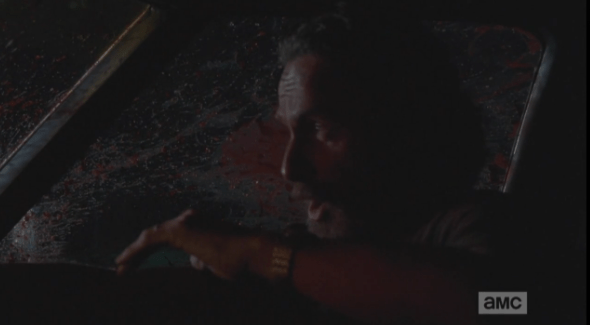 rick in shotgun walker slime Published February 28, 2015 at 590 × 325 in The Walking Dead, Season 5, Episode 11, “The Distance”