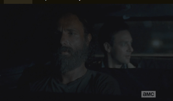 rick listens to aaron’s answer Published February 28, 2015 at 588 × 343 in The Walking Dead, Season 5, Episode 11, “The Distance” Rick, looking ahead at the road, awaits Aaron’s answer…he hems and haws before answering, a trifle defensively, “I don’t know…a lot.”