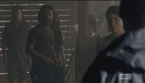 rick sniffs gun, vibes aaron Published February 25, 2015 at 586 × 336 in The Walking Dead, Season 5, Episode 11, “The Distance”