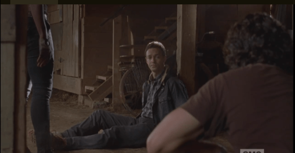rick taking notes Published February 28, 2015 at 600 × 313 in The Walking Dead, Season 5, Episode 11, “The Distance” Aaron looks over at Rick, who is crouched down with pen and paper, ready to take notes…on directions to the camp, and on how hot his boss lady gf is when she’s taking charge and getting it done!