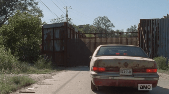 they pull up to the gates Published February 28, 2015 at 592 × 329 in The Walking Dead, Season 5, Episode 11, “The Distance”