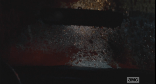 walker guts on the windshield Published February 28, 2015 at 601 × 323 in The Walking Dead, Season 5, Episode 11, “The Distance”