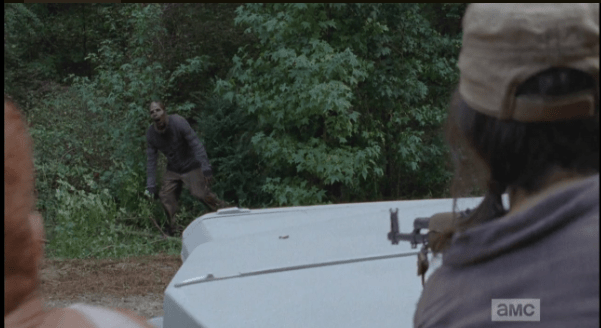 woods walker makes cameo Published February 28, 2015 at 601 × 328 in The Walking Dead, Season 5, Episode 11, “The Distance” Mr. and Mrs. Walker. “Honey, look, our brunch guests have arrived! Welcome to our woods…you’re just in time…I was just telling the wife, ‘Sure am getting hungry!'”