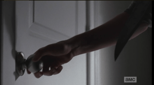 carl at the door, knife Published March 8, 2015 at 600 × 330 in The Walking Dead, Season 5, Episode 12, “Remember”