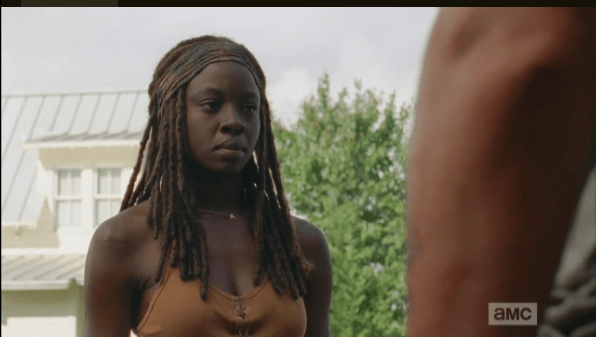 michonne constable Published March 11, 2015 at 596 × 337 in The Walking Dead, Season 5, Episode 12, “Remember” Michonne accepts as well, “Yeah, I’m in.”