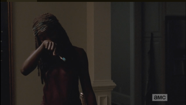 michonne toothbrush Published March 8, 2015 at 598 × 337 in The Walking Dead, Season 5, Episode 12, “Remember” I love this pic.