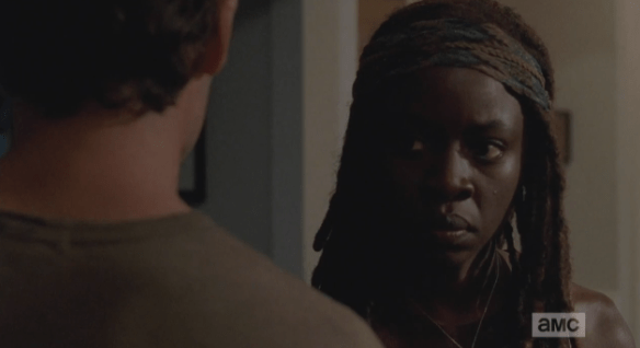 richonne yeah me too Published March 8, 2015 at 584 × 318 in The Walking Dead, Season 5, Episode 12, “Remember” Michonne’s face gets even more serious. “Yeah, me too,” she says, thinking.