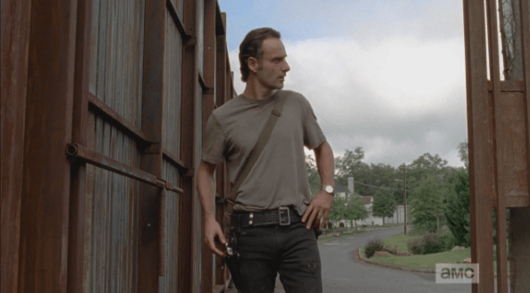 rick goes on walkabout Published March 10, 2015 at 593 × 328 in The Walking Dead, Season 5, Episode 12, “Remember” Rick looks like a hot badass.