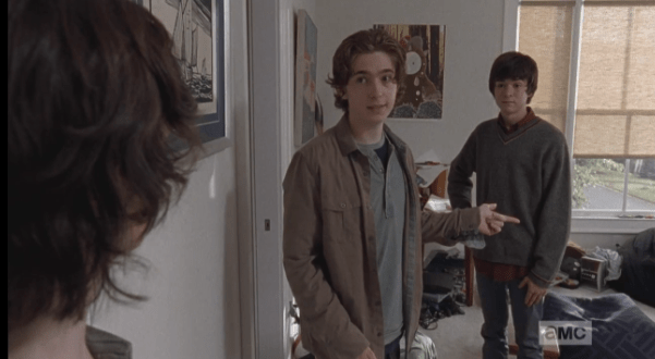 rowan suggests activities Published March 9, 2015 at 601 × 330 in The Walking Dead, Season 5, Episode 12, “Remember” Rowan, being a good host, offers different activities they can do…they can play video games, or Mikey’s house has a pool table (and a strict dad, who luckily is at work at the moment).