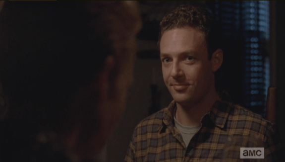 aaron tries not laugh 2 Published March 17, 2015 at 575 × 326 in The Walking Dead, Season 5, Episode 13, “Forget”