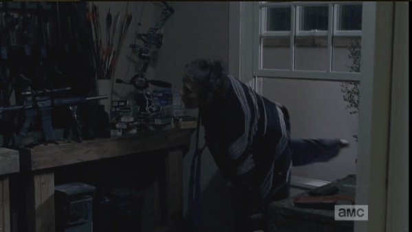 carol breaking in to the armory Published March 17, 2015 at 599 × 337 in The Walking Dead, Season 5, Episode 13, “Forget” And here we have Carol, climbing through the window of the storeroom and armory to help herself to some of Alexandria’s gun surplus. I had a bad feeling the whole time with this plan, like Carol was going to get caught…