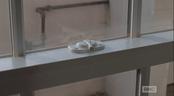 carol opened the latch Published March 16, 2015 at 594 × 329 in The Walking Dead, Season 5, Episode 13, “Forget” As everyone files out of the storeroom, we see that Carol has opened the window’s latch.