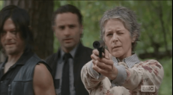 carol walker target practice Published March 14, 2015 at 598 × 330 in The Walking Dead, Season 5, Episode 13, “Forget” Carol, however, motions to the men…she’s got this. She points her gun and starts shooting at the approaching walker.
