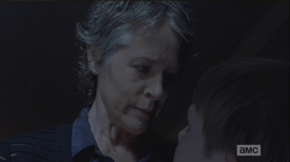 creepy carol brings it home Published March 17, 2015 at 593 × 332 in The Walking Dead, Season 5, Episode 13, “Forget” “Or, you can promise never to tell anyone what you saw here, and then nothing will happen. And you’ll get cookies.” Creepy Carol’s eyebrows raise. “Lots of cookies.”