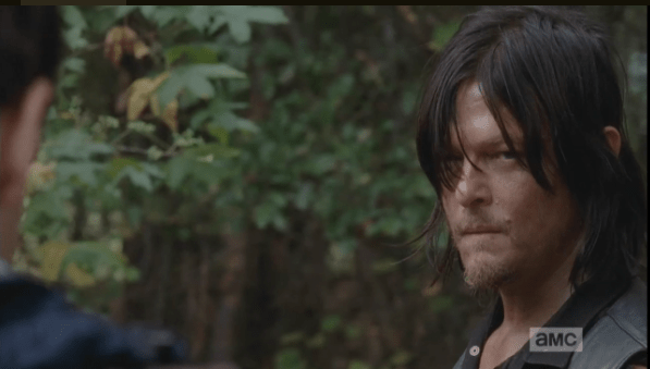 daryl looking hot at aaron 1 Published March 15, 2015 at 597 × 339 in The Walking Dead, Season 5, Episode 13, “Forget” Aaron is pretty amazed. “You can tell the difference between walkers and humans by sound?” It’s interesting that Aaron uses the gang’s teminology for the undead with Daryl. Daryl doesn’t answer, just looks super hot silently vibing Aaron.
