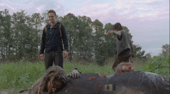 daryl says go ahead Published March 16, 2015 at 592 × 327 in The Walking Dead, Season 5, Episode 13, “Forget” He turns away, tells Aaron to “go ahead.”