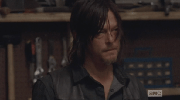 Daryl takes this all in, then says, finally, that he doesn’t have anything else to do, so ok…and after a moment, he gives Aaron this sweet look, and says, quietly, “Thanks.” (Daryl is totally my muse for this post…so many great shots of him in this episode!) ❤