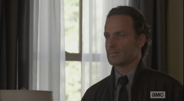deanna tells Rick you protect and serve Published March 15, 2015 at 595 × 327 in The Walking Dead, Season 5, Episode 13, “Forget” Meanwhile, Deanna is outlining Rick and Michonne’s duties as co-constables. “You protect and serve…you patrol, walk the wall, protect the kids.”