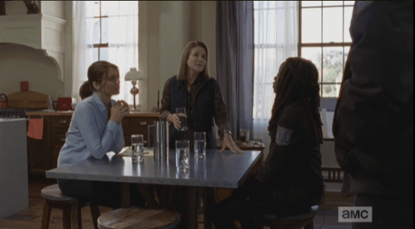 deanna walk the wall, protect the kids Published March 15, 2015 at 595 × 329 in The Walking Dead, Season 5, Episode 13, “Forget” Deanna does not mention guarding or maintaining a watch beyond the walls for any outside threats to the community as a whole.