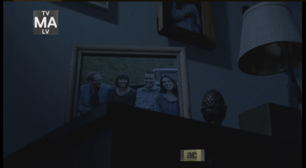 frame 1 Published March 13, 2015 at 609 × 335 in The Walking Dead, Season 5, Episode 13, “Forget” WD Ep 513 opens before the sun rises another day in Alexandria: Vanilla Dream. In the predawn darkness, we see framed pics of white people arm in arm, or trying to look casual and unscripted while posturing themselves in wacky antics for the camera.