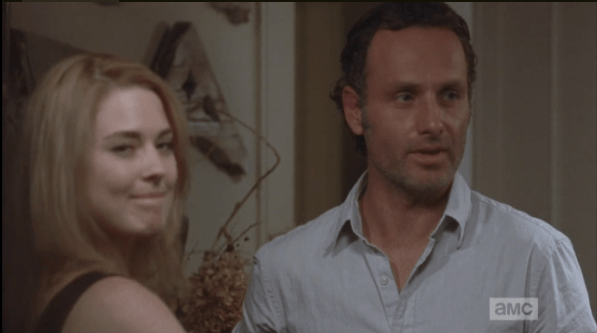 jessie says nice view Published March 16, 2015 at 597 × 333 in The Walking Dead, Season 5, Episode 13, “Forget” After some stops and starts in the conversation, Rick being so primal and new at this and all, Jessie points out that there’s a pretty “great view.” Rick is slow on the uptake, but Jessie points his attention to…