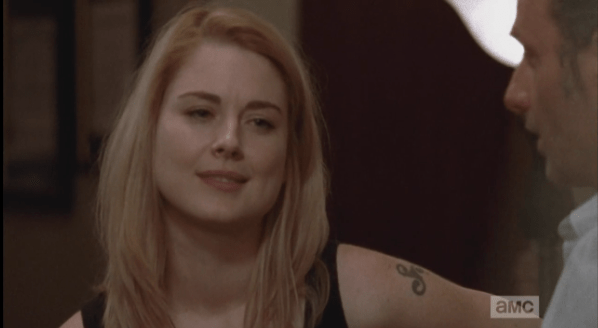 jessie Published March 16, 2015 at 598 × 328 in The Walking Dead, Season 5, Episode 13, “Forget” Sam runs off, and Jessie tries to reign him in, to no avail, while Rick is completely and utterly captivated by her.